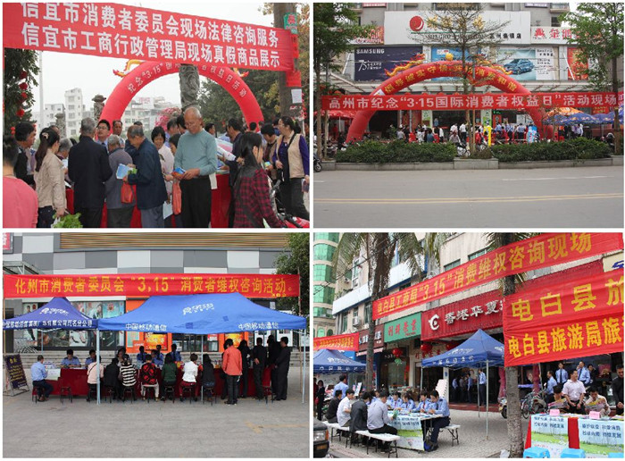活动期间,各单位悬挂宣传标语、海报1200多条,发放《消费者维权手册》、《通讯服务消费指南》、《绿色汽车消费指南》、《茂名市关于对超标电动自行车实行过渡期管理的通告》等宣传手册50000多份;销毁伪劣食品、药品、化肥、烟草等假冒伪劣商品约20多吨,市场标值46万多元;接受咨询群众共2000多人次,受理消费申诉2宗、接到消费投诉4宗。