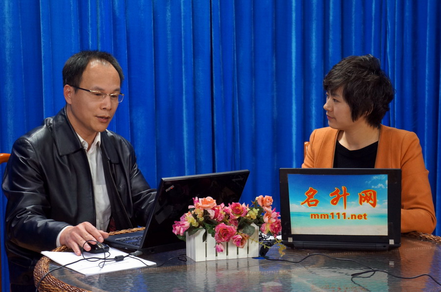 上图为高州市“两建”办副主任、高州市工商局副局长颜雄文在接受茂名新闻网主持人和网友提问