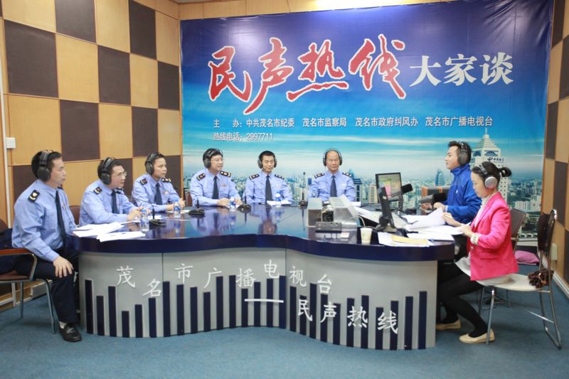 11月20日上午,市局党组书记、局长陈德敬带领市局党组成员、副局长江辉健,市局党组成员、纪检组长王勤,以及窗口办、企管科、消委会等3个单位负责人,走进茂名人民广播电台直播室,上线由中共茂名市纪委、茂名市监察局、茂名市政府纠风办、茂名市广播电视台主办的第219期茂名市“民声热线”直播节目,听民声、察民情、解民忧。