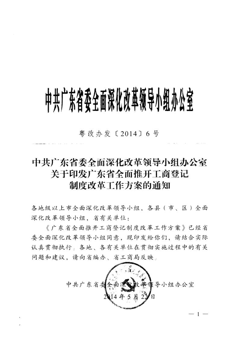 - 上一篇:广东省2014年3月起全面推开工商登记制度改革解读 2014/6/25