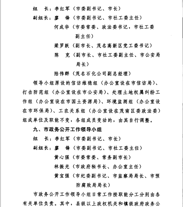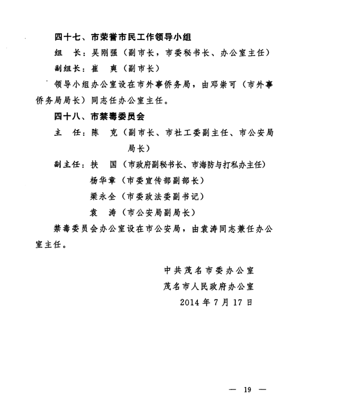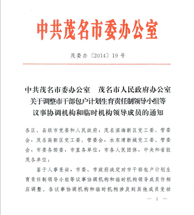 2014年调整茂名市两建领导小组的领导成员的通知文件