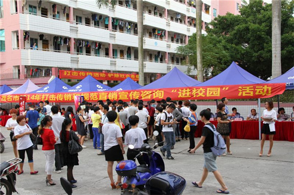 市打传办、市工商局、市公安局和无限极、安利、完美、玫琳凯等直销企业通过深入校园举办讲座、开展大型宣传咨询活动等方式,宣传《禁止传销条例》、《直销管理条例》有关法律知识,现场接受市民、学生的咨询,解答群众关于直销企业如何维护消费者合法权益、如何加强直销员管理和规范经营等有关问题。通过一系列活动,进一步提高了广大群众和学生识别传销、抵制传销的能力,增强直销企业自我管理和守法经营意识。