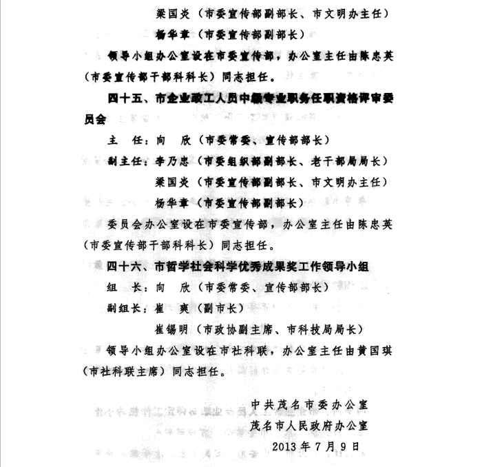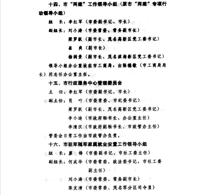2013年调整茂名市“两建”工作领导小组领导成员的通知文件(第十四项)